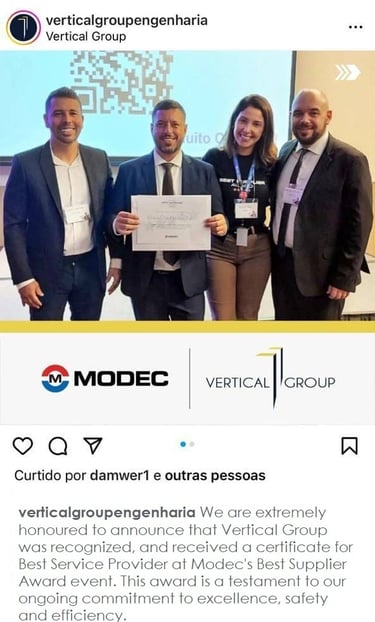MODEC recognizes the work carried out by Vertical Group as the best service provider in 2023. The result of dedication and commitment over several years.Vertical Offshore congratulates our partners for their Excellence.